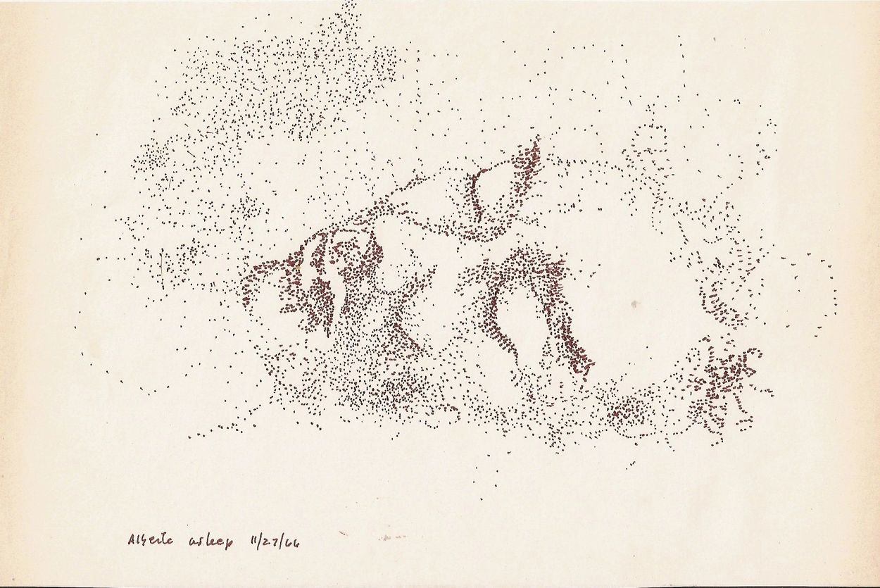 "Alberto Asleep" © 1966 SH Bingham. Fine felt pen on paper.